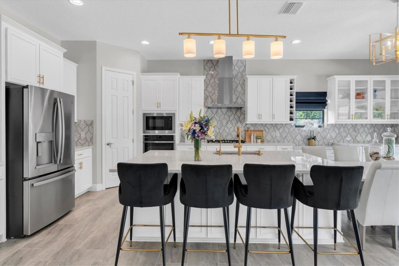 Welcome to a luxury estate in the coveted gated section of Starkey Ranch a Tampa Bay award winning master planned community. This exceptional Madeira III by WestBay Homes sits on one of the few expanded homesites in the entire community - an impressive .40-acre cleared lot backing directly to the serene Starkey Wilderness Preserve, offering unmatched privacy and breathtaking natural views.This expansive residence offers 5 bedrooms, 3.5 bathrooms, and over 4,200 square feet of living space, blending luxury, functionality, and energy efficiency. The home features a fully paid-in-full solar system with 104% power offset using REC panels valued at approximately $60,000 - delivering the rare benefit of virtually no electric bill.Step into your private resort-style backyard oasis designed for ultimate relaxation and entertaining. Enjoy a saltwater pool and heated spa powered by a 400K Pentair heater with seven jets and a tranquil water feature. The outdoor space is finished with beautiful travertine decking, landscape rock accents, gutters in the backyard and over the pool equipment area, and a premium Canadian Timber Collection cedar sauna featuring a 7-kilowatt Harvia heater, hardwired to electric and designed to accommodate up to eight people, valued at approximately $20,000.Inside, you are welcomed by grand two-story ceilings, elegant crown molding in the foyer, tray ceilings, and designer lighting throughout the main living areas, including custom fixtures from Pottery Barn. The living room features a custom stone accent wall, built-in ceiling speakers, and remote-controlled custom window shades, creating both comfort and sophistication.The gourmet kitchen is a showpiece, featuring quartz countertops with extended seating, tiled backsplash, extended cabinetry with glass showcase display, gold hardware and faucets, reverse osmosis system, and a spacious layout perfect for entertaining. The thoughtfully designed floor plan includes a first-floor bedroom with a private full bath, ideal for guests, in-law quarters, or a secondary owner's suite, along with a den or office with glass double doors and a beautifully designed drop zone with tile flooring for everyday convenience.Additional upgrades throughout the home include a water softener system, tankless water heater, CAT 6 internet pre-wiring, three 3-ton AC units, custom rods, curtains, and shades that convey, and a spacious laundry room complete with folding table and built-in drawers. Upstairs, the home features a Jack-and-Jill bathroom and generous secondary bedrooms, while the luxurious owner's retreat showcases crown molding, black quartz countertops with gold accents, and a large garden soaking tub creating a spa-like atmosphere.The backyard is thoughtfully designed with cleared land maximizing space while maintaining the natural beauty of the preserve setting. This rare estate offers luxury finishes, energy efficiency, resort-style outdoor living, and one of the largest homesites in Starkey Ranch - all within a private gated enclave. Experience elevated Florida living at its finest.The community includes multiple parks, playgrounds, pools, kids splash zone, magnet K-8 elementary middle school, county library, starkey ranch district park,tennis, and over 20 miles of walking/biking trails. Conveniences include grocery, restaurants,nails and hair salon and a neighborhood favorite starkey market.
